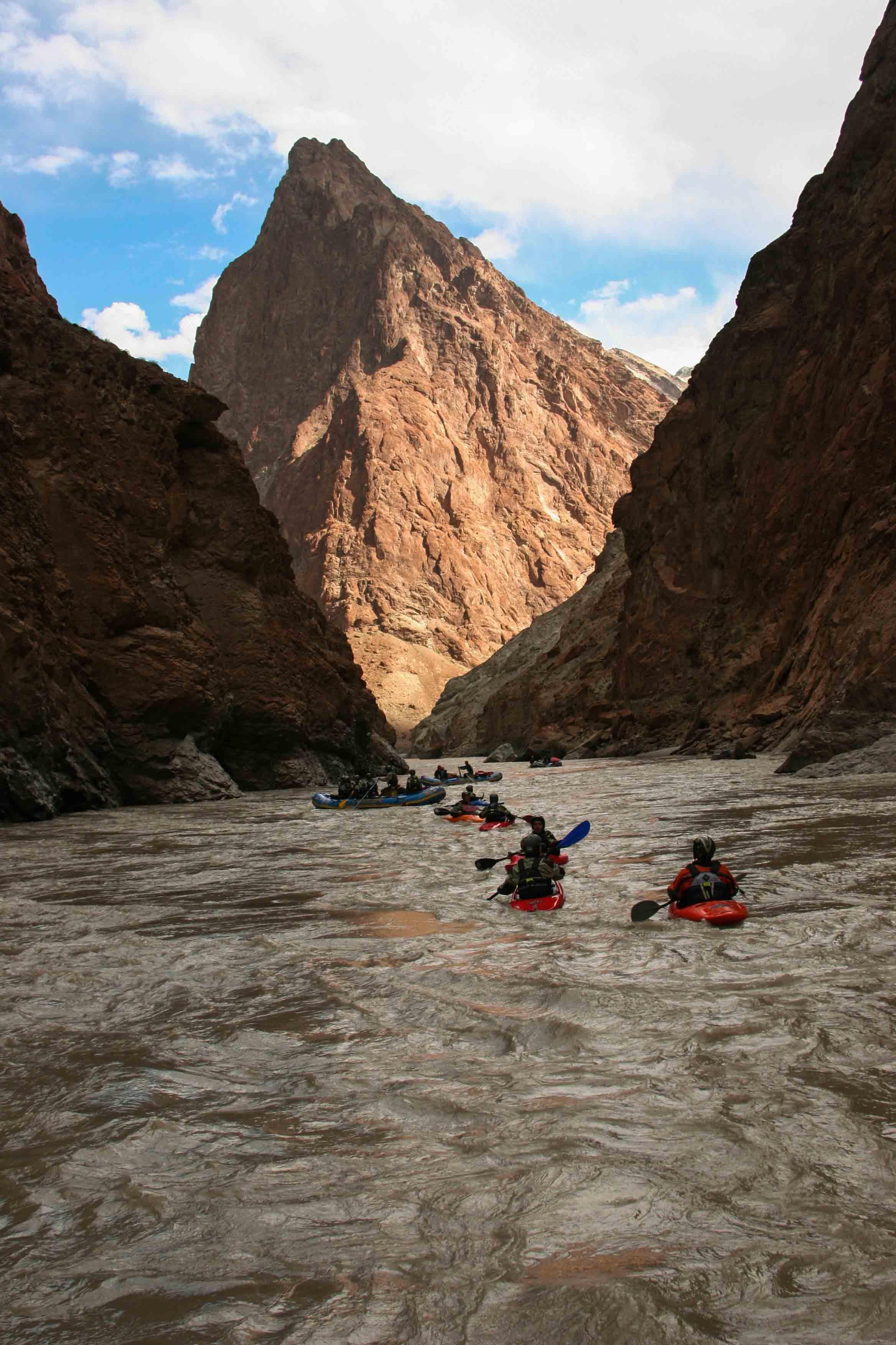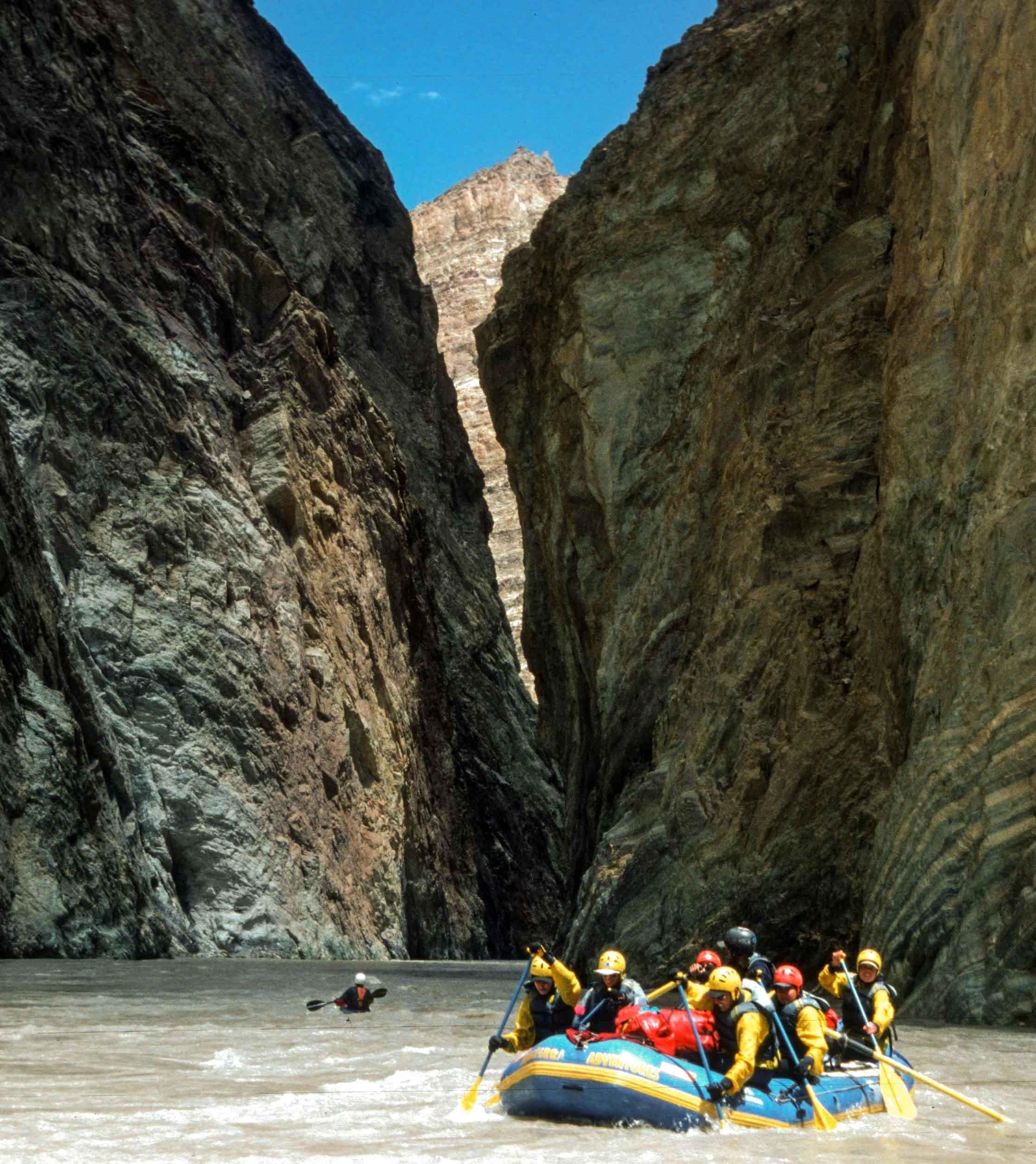 One of the highest inhabited places in the world, Zanskar in Ladakh is a hidden kingdom, only accessible to the outside world in the winter by trekking across the frozen Zanskar river. In the summer, the river thaws, giving way to a rush of grade 4 and 5 rapids that have ominous names like the ''Constrictor'' and ''Dislocator''. You'll drive through western Ladakh, visiting monasteries, palaces and villages, passing a surreal landscape of multi-colored mountains and lush valleys. Arriving at the Stod river, you'll begin a self-contained multi-day river adventure down the spectacular Zanskar river gorge. Float through the desolate canyon, its walls rising a few thousand feet out of the river bed, culminating the trip at the mighty Indus river after which India is named. End your journey in the high-altitude city of Leh, where you can sample Tibetan cuisine and visit the bustling bazaar.