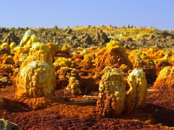 Take a morning flight from Addis Ababa to Mekelle. Upon arrival, drive to the Danakil Depression via Berhale. The journey marks the beginning of one of the world’s most geologically active and inhospitable environments. Along the way, pass through the small town of Berhale, a traditional stop for camel caravans en route to and from the salt mines. Witness long lines of camels loaded with salt, offering a glimpse into one of Ethiopia’s oldest trade routes.