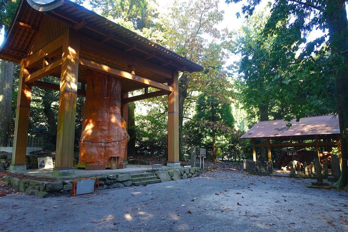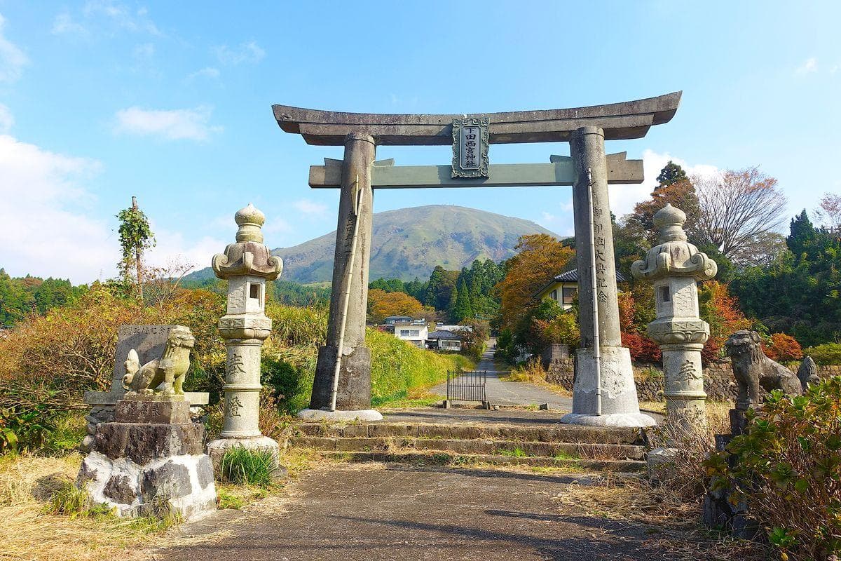 Given that the origins of Kagura can be traced back to Ama no iwato, it is hardly surprising that Aso is home to Shinto shrines that venerate the Japanese Gods. The oldest Shinto shrine in Kumamoto Prefecture is Kokuzo Shrine. On its grounds is a massive cedar tree said to be planted by the pioneer god of Aso, Hayamikatamanomikoto. Near Kokuzo Shrine are the 6th-century kofuns (megalithic tombs comprised of horizontal hole-shaped stone chambers) of Kami-Mikura and Shimo-Mikura. Here another deity, Konpira, of thunder, water, and agriculture is enshrined. Horai Yoshimi Shrine is distinguished by its 700-year-old towering twin cedars. Aso Shrine is one of the oldest shrines in Japan, dating back to the 3rd century. Its spectacular two-story Romon Gate was the largest in Kyushu, and was one of Japan's three largest shrine gates. The spring water located near Aso Shrine is celebrated as a gift from the gods. Other prized sources of water are Nabegataki Falls, with a 20 meter (65 feet) wide curtain of cascading water, Teno no Meisui, believed to the secret to longevity, and Ikeyama Fountainhead, chosen by the Japanese Environment Agency as one of the 100 exquisite and well-maintained waters in Japan.