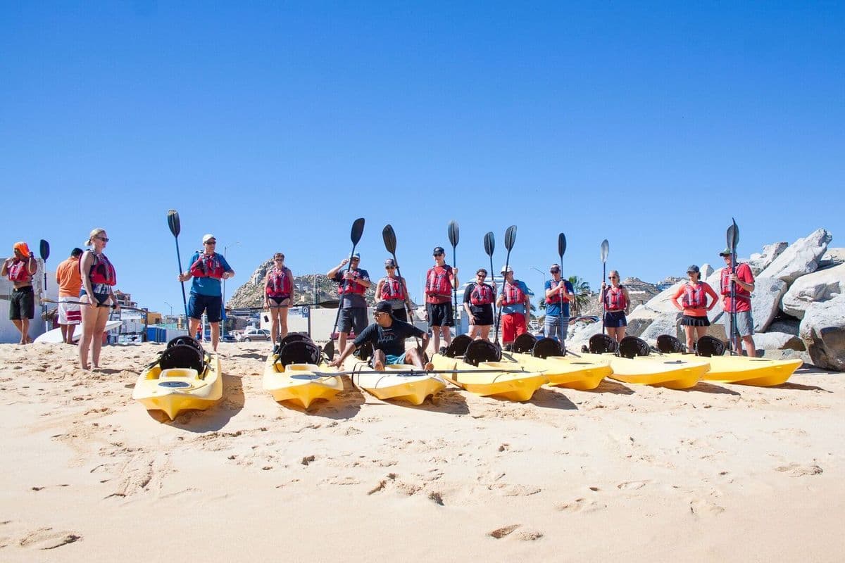 We begin the tour at the designated launch point in Cabo San Lucas, where you'll receive a briefing on safety and kayaking techniques. You’ll be outfitted with a glass-bottom kayak and snorkeling gear for a unique adventure.