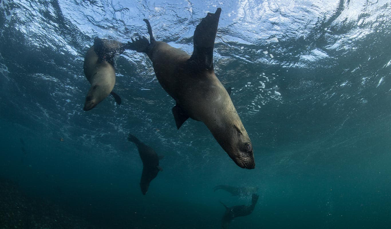 The Shark Explorers team will introduce you to your surroundings and get you ready to witness the inquisitive seals dance and dash around you in a display of stamina and agility. Once you dip your mask below the surface, the world above will be forgotten as you interact with your new ocean-dwelling friends. Our experienced dive masters and skippers will provide you with all the support you need to have a wonderful outing and a memorable experience. No prior experience is required, and all equipment will be provided. This trip is fun for the whole family and is a must when visiting Cape Town!