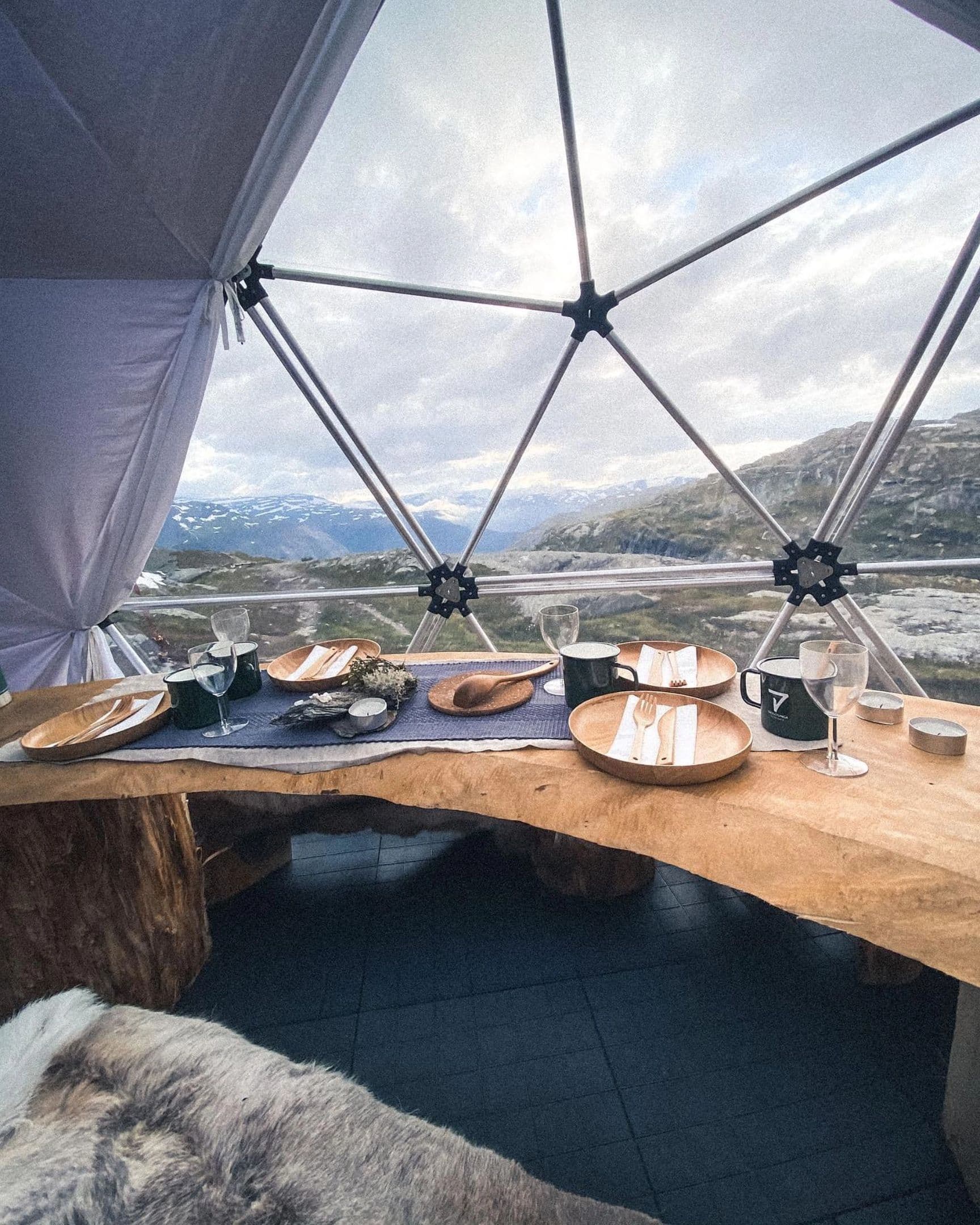 Upon arrival at Trolltunga, you are ready to check out the dome, and a delicious outdoor dinner is prepared.