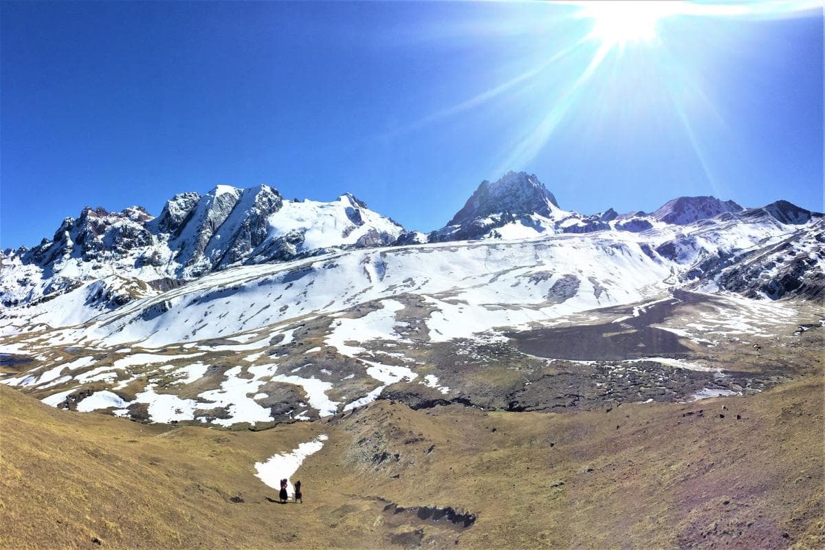 Standing high at 20,921 feet, Mount Ausangate is the highest peak in the Cusco region. The hike to Ausangate Mountain is considered to be one of the most stunning and remote hikes in Peru. This majestic snow-capped mountain is full of natural beauty; with crystal clear blue lakes, vicunas, llamas, alpacas, vizcachas and condors. You will visit the 12,000 ft high hot springs in which you can soak your body in the relaxing thermal waters while taking in these picturesque surroundings. On the final day of this incredible experience, you will climb Rainbow Mountain - one of the most extraordinary natural wonders of Peru.