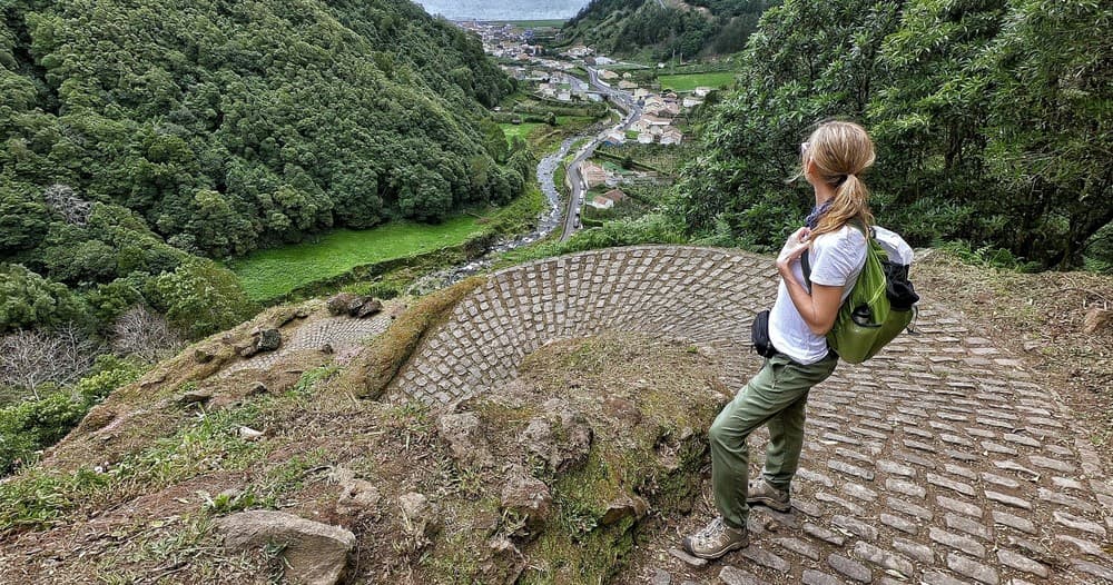 On the return, the trail takes us to the village of Sanguinho, an old settlement that was abandoned several decades ago and is currently being restored. This route offers panoramic views of the valley and the ocean, completing the hike with a connection to the region’s past.