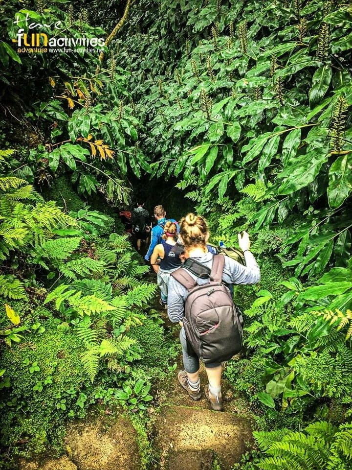 The tour begins in the parish of Faial da Terra, where we will start a hike along a stream, with a moderate ascent through trees, creating a peaceful and pleasant atmosphere. We continue through the forest, crossing wooden bridges and stone paths, following routes once used by the local inhabitants. The destination is the Salto do Prego waterfall, a special spot where we will take a break. The waterfall has a natural pool, ideal for a quick swim or simply relaxing and enjoying the surroundings.