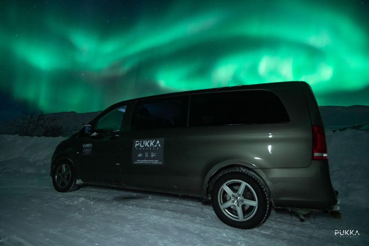 Tromso is one of the top places in the world to witness the Northern Lights. We make this experience optimal for you during our comfortable Northern Lights minibus chase, departing from our base camp in central Tromso. You will be with one of our dedicated guides, who has the passion to help show you the Northern Lights dance in the sky above, we are here to ensure that this a memorable night to remember for a lifetime. In small groups with a maximum of 15 people, we will set out into the polar night to one of our favorite spots to watch the Northern Lights (away from light pollution and with clearest skies possible). If it is cloudy above Tromso, don’t worry, it is possible to find clear skies at a location further away. Our team will carefully analyze the weather conditions before the trip while keeping in touch with other guides to monitor cloud movements in the local and surrounding areas. Once we find the best spot, it will be time to wait for the lights to shine while setting up our cameras and taking photos. Your guide will take professional photographs, which will be shared within 3 days of your tour. Your guide will also help you set up your own camera and if you need a tripod, we can let you borrow one of ours for free. Our aim is to create a stress-free, enjoyable and safe way to be able to see the Northern Lights during your stay in the Arctic. Your guide will stay with you for the entire evening while making sure you are as comfortable and warm as possible. We provide thermal suits and warm, dry boots for the entire duration of the tour. Later in the evening we will make a bonfire, have a warm meal, roast marshmallows and enjoy hot drinks by the fire. If you are a vegetarian or have any other dietary preferences, please let us know and we will make sure there is something for you as well! Before and after the tour: Before the tour takes off we will meet up at our Base camp in central Tromso for a briefing and introduction to the area we will explore and the Northern Lights forecast for the evening. The minibus picks you up outside the building so there is no need to walk far or get cold on the way. After the trip, you have a short walk back to your hotel (our recommended hotels are only located a few hundred meters from our base camp in central Tromso).