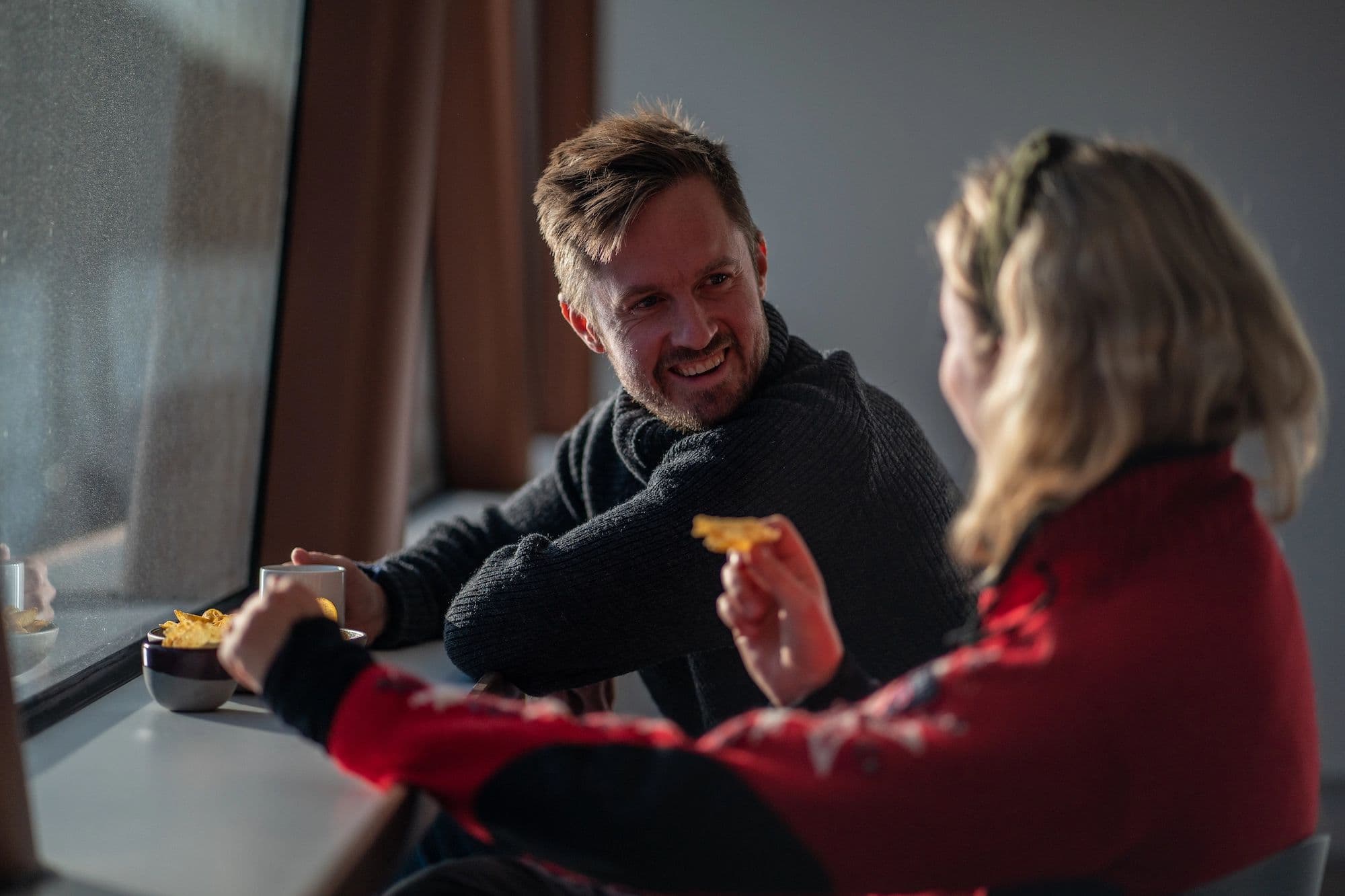 Depart Tromsø at 08:00 in the crisp arctic morning, and head out to the whales’ feeding grounds in time to enjoy the few hours of polar daylight. Purpose-built for whale watching, the hybrid-electric boat gives you a unique perspective on the surroundings.