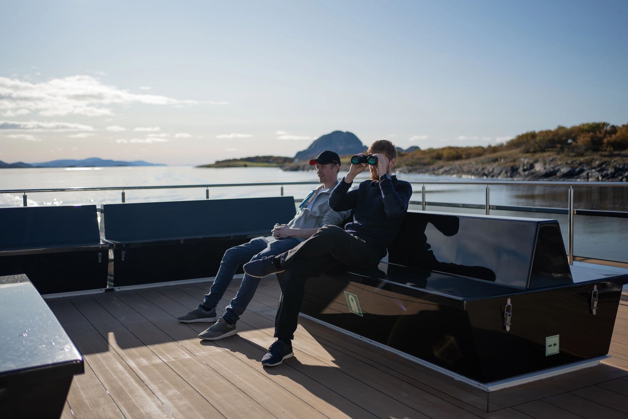 On the way, you can take in the frozen landscapes as they slowly wake up. You can relax in comfortable, panoramic lounges and multi-level decks. The friendly crew will share their personal stories about interesting sights along the way and give you detailed information about the Orca and Humpback Whale.