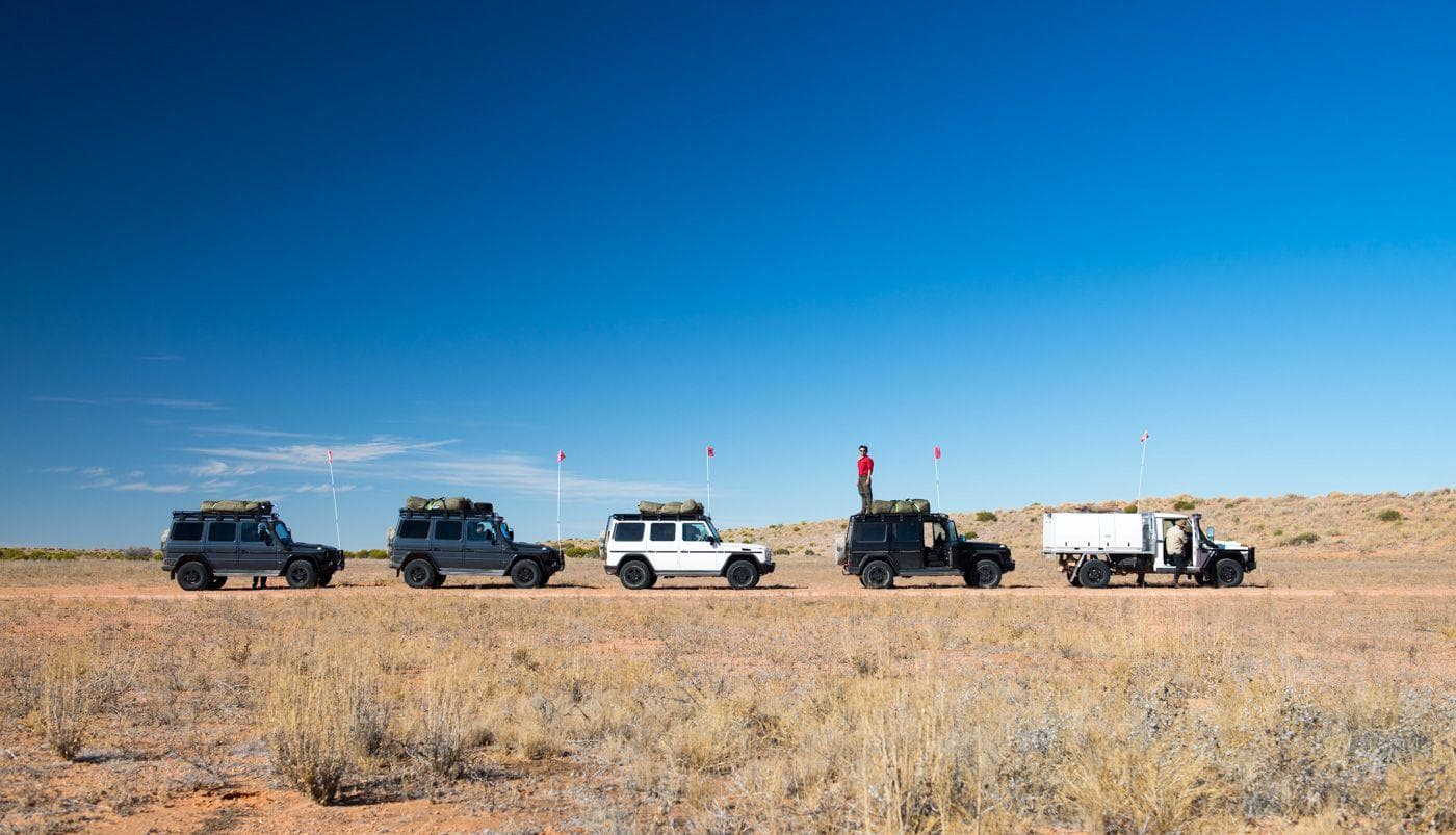 Crossing the Madigan Line from East to West is one of the most challenging and remote desert crossings in Australia. With good preparation, planning and the right vehicle setups it's also one of the most enjoyable. Traveling with experienced professionals like Mike Horn and being catered with outstanding food and service means you can relax and enjoy the journey. Things really kick off at the famous Big Red Sand dune (named by our friend Denis Bartell in 1980 after one of his many extraordinary desert crossings, check out his book Desert Walker) followed by 750km of vast beauty before you see any kind of civilization at Mt Dare Station. Imagine sitting atop a red sand dune in the middle of the largest sand dune desert in the world inside the traditionally owned land of the East Arrernte people, a long dining table tastefully set in full view of the setting sun as you enjoy a quiet drink and pre-dinner snacks around the fire reflecting on the day as dinner is prepared. Crepes with vanilla bean ice cream, freshly baked bread, ground coffee, cooked breakfast, fresh fruit and pork belly on the menu adds a sense of luxury in the heart of central Australia.