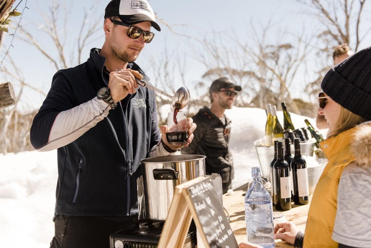 Embark on a snowshoe tour at sunset to our hidden eco-village and indulge in a delicious French cheese fondue dinner! The experience starts with an evening snowshoe walk through the mystic snow gums, to encapsulate a sense of remoteness and immerse oneself in the Australian alpine environment. Leaving at sunset from the wire plain shelter, the walk will weave its way to a hidden eco-village, where you'll enjoy a delicious heart-warming glass of Gluhwein outside by the fire. You will then be invited into the Central tipi with a fireplace, where you will learn the secrets to making a traditional and mouth-watering French fondue, with cheese imported for the occasion from French Alpine farms.