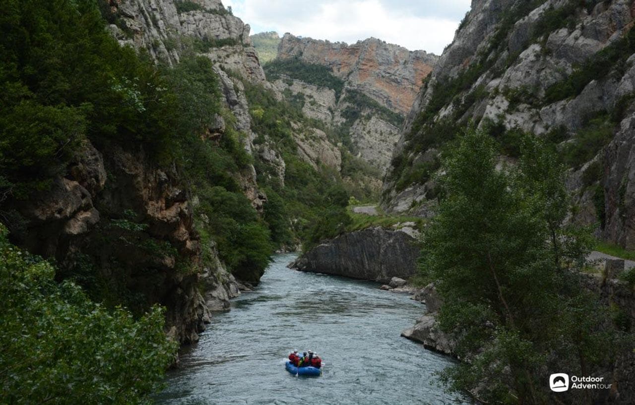 Discover the charms of the Boumort National Reserve, Pyrenees, Catalonia, Spain. The trip consists of two full days of adventure. You will do two activities full of fun and excitement: rafting on the River Noguera Palleresa on the first day and a canyoning descent of the Barranc de l'Infern Canyon on the second. Between the two activities, you will spend the night in a mountain camp set up especially for the group and sleep in a beautiful, isolated, little-known spot in Pallars. The camp, equipped with all the comforts and conveniences you need, has a great team: the cook, who will prepare dinner with a local flavor, and an accompanying guide, who will make sure your stay is a unique and unforgettable experience.