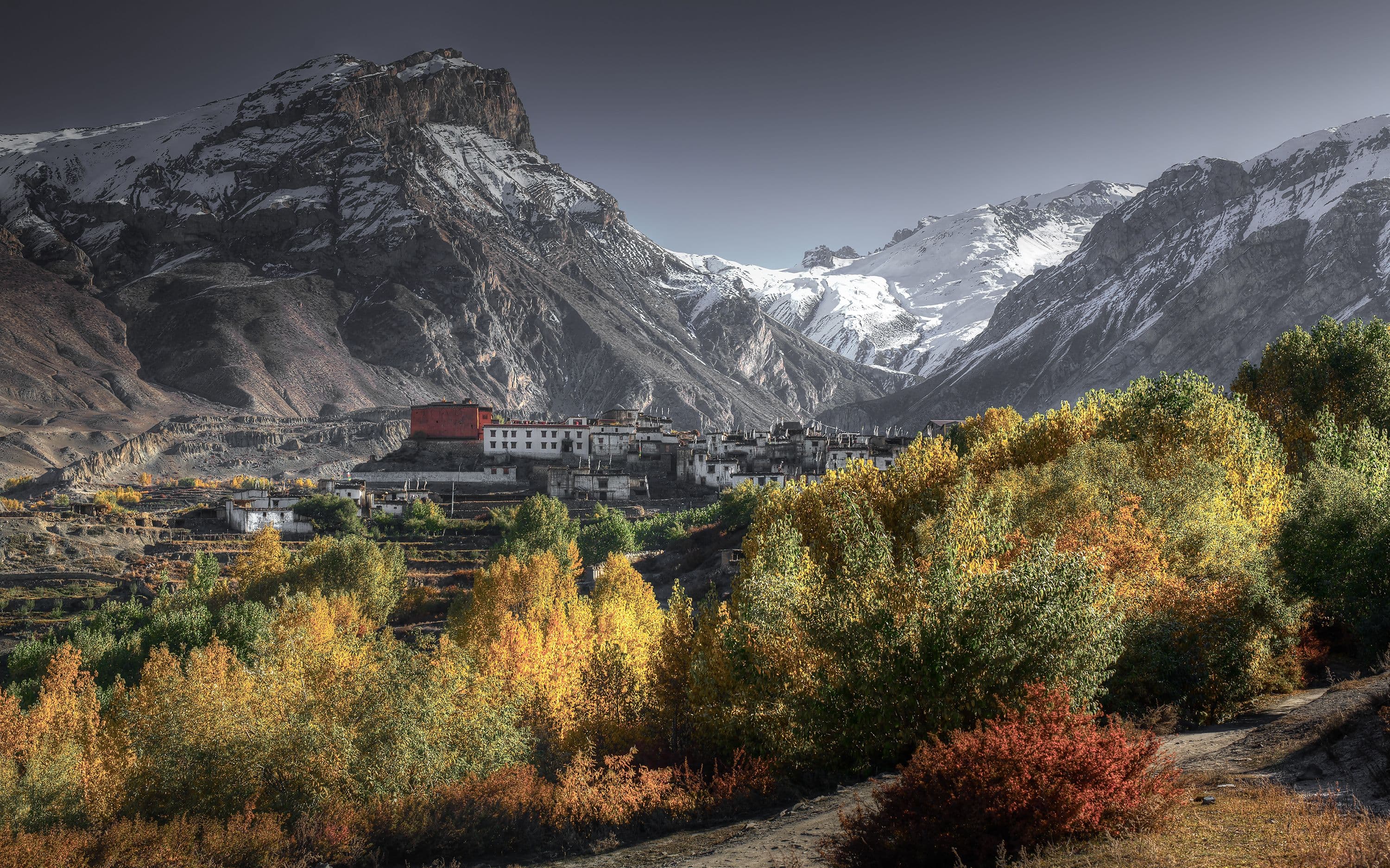 You’ll cross several scenic passes, including the Nyi La Pass (3,932 m / 12,900 ft)—the highest point of the trek. Every pass marks a natural division between valleys and villages, offering panoramic views of barren mountains, deep gorges, and snowcapped peaks in the distance.