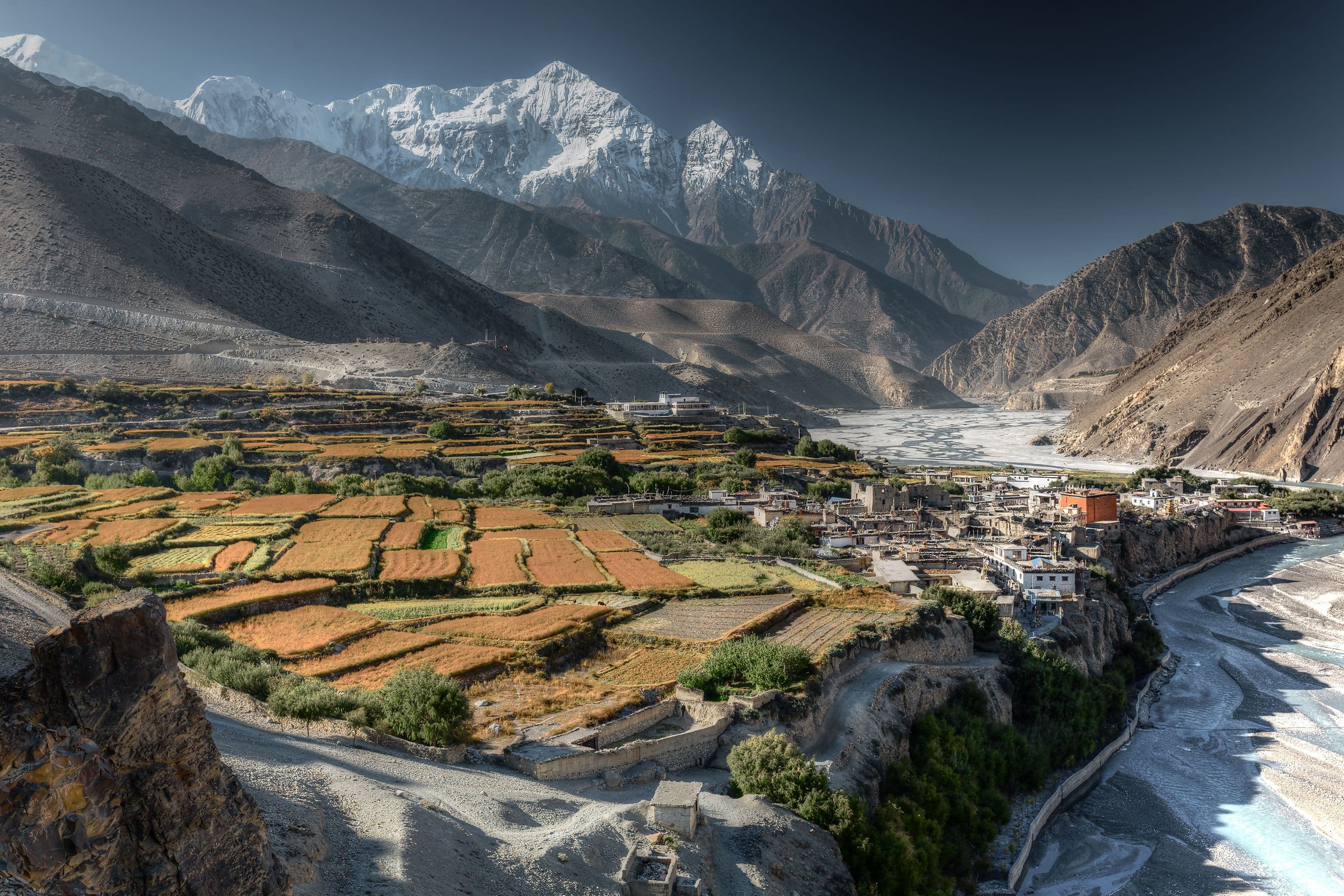 This fascinating trek begins from the windswept town of Jomsom, following the Kali Gandaki Valley, known as the world’s deepest gorge. As you ascend through ancient trade routes and traditional villages, you’ll cross windswept plateaus, pass through centuries-old Tibetan Buddhist monasteries, and eventually reach Lo Manthang, the ancient walled capital of the former Kingdom of Lo.