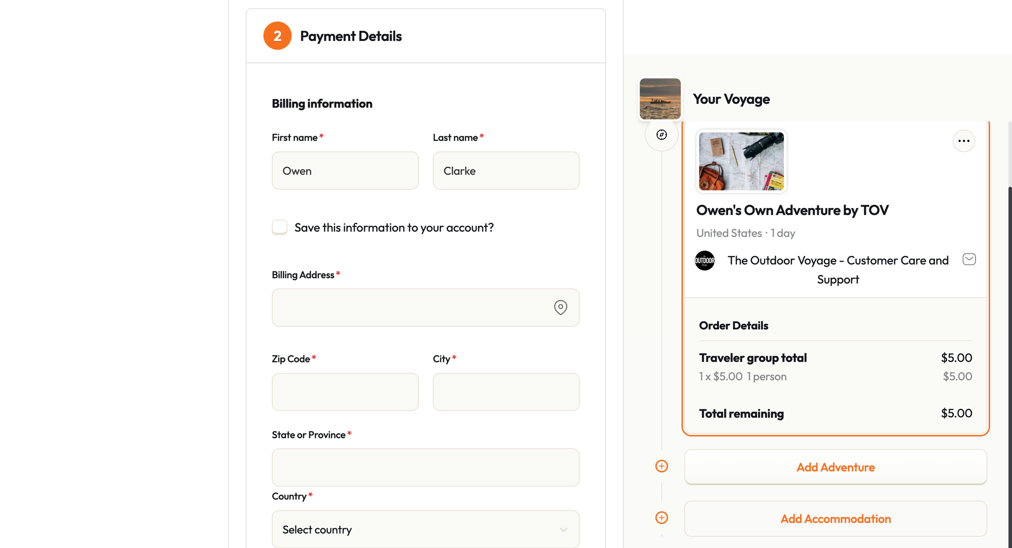 You'll book your Voyage through our platform after coordinating with the Operators that are hosting your Adventures. First, add Adventures to your Voyage. They'll be listed as "Planning" in this first phase. You can see this in the right sidebar, next to the Adventure's price.