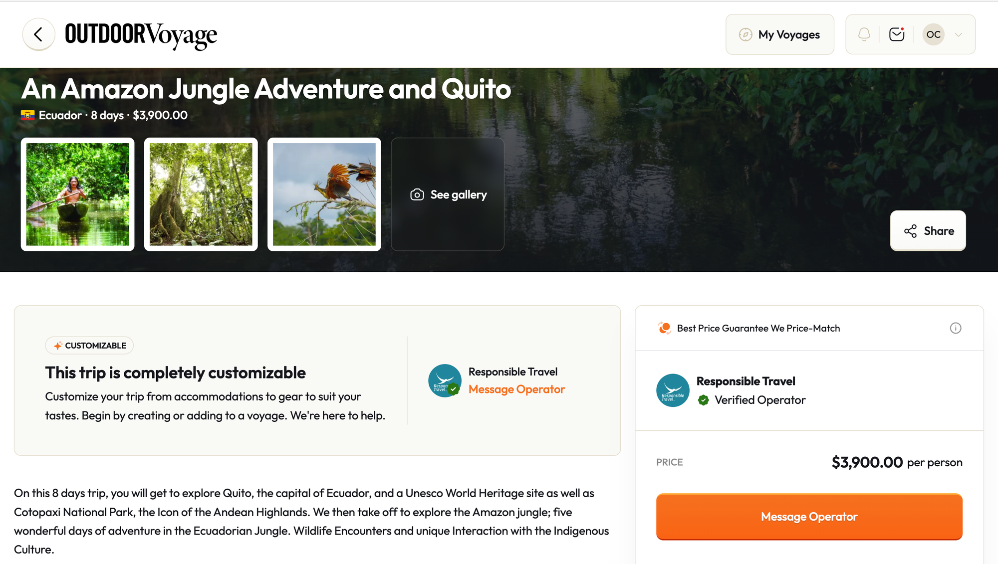 Operator pages are the hub for all things offered by given operator. (Here is an example, from German-Ecuadorian outfitter Responsible Travel.)