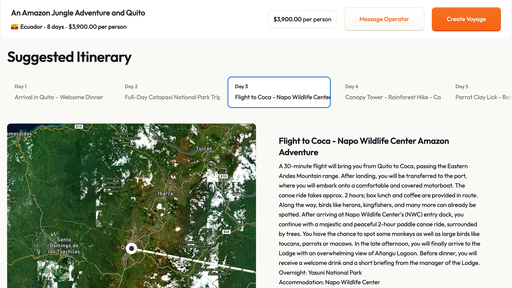 Every Adventure page is slightly different (they're designed by the operator, not Voyage), but you'll usually also be shown what is and isn't included in the price, and then a full suggested itinerary, breaking down each day of your adventure from start to finish, letting you know where you'll be and what to expect.