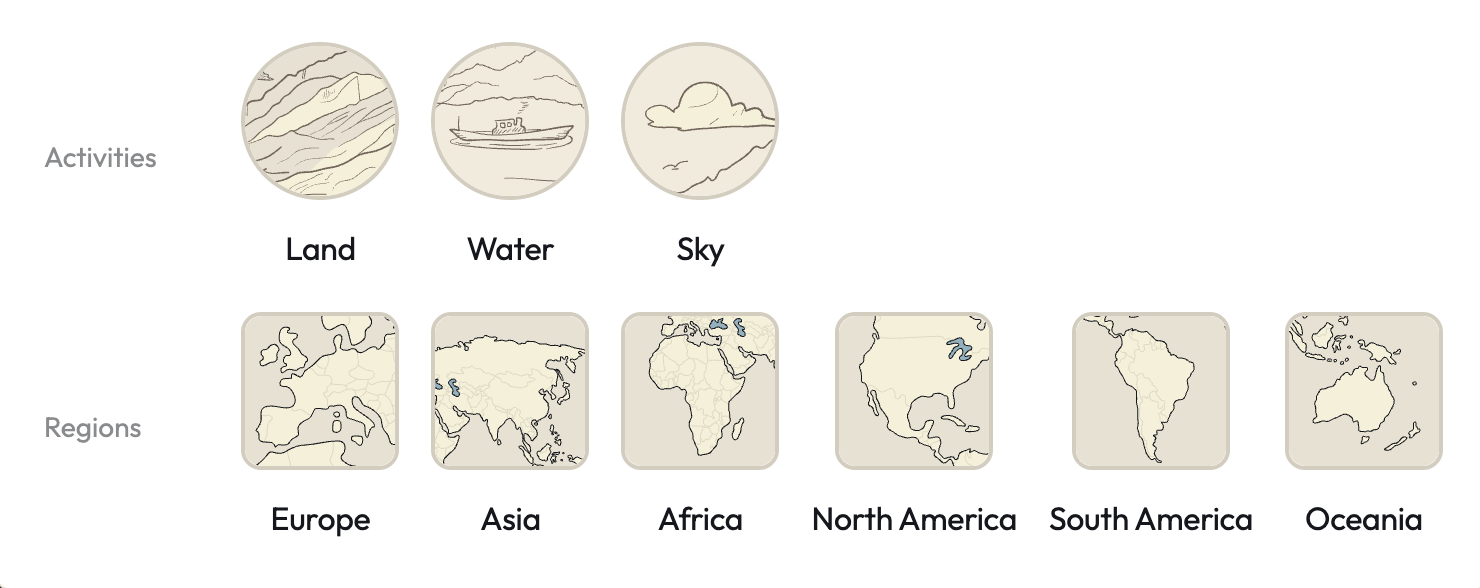 You can simply scroll our integrated map of the world, scanning the Adventures that pop up. If you don’t have a specific destination in mind, this is the best way to start. You can also conduct a targeted search. First, you’ll refine your search either by activity, by region, or both.